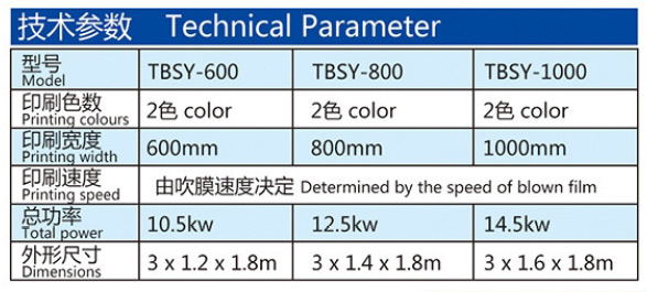 機器特性 根據塑料外資企業要求,生產的雙色印刷機。主要配套在吹膜機上使用,具有快捷、便利的特點,使吹膜印刷一起完成。